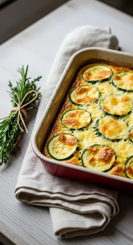 Light yet satisfying. Grate zucchini and squeeze out moisture. Combine with eggs, Parmesan, and garlic. Bake until set. Great for anyone watching carbs but still craving comfort.