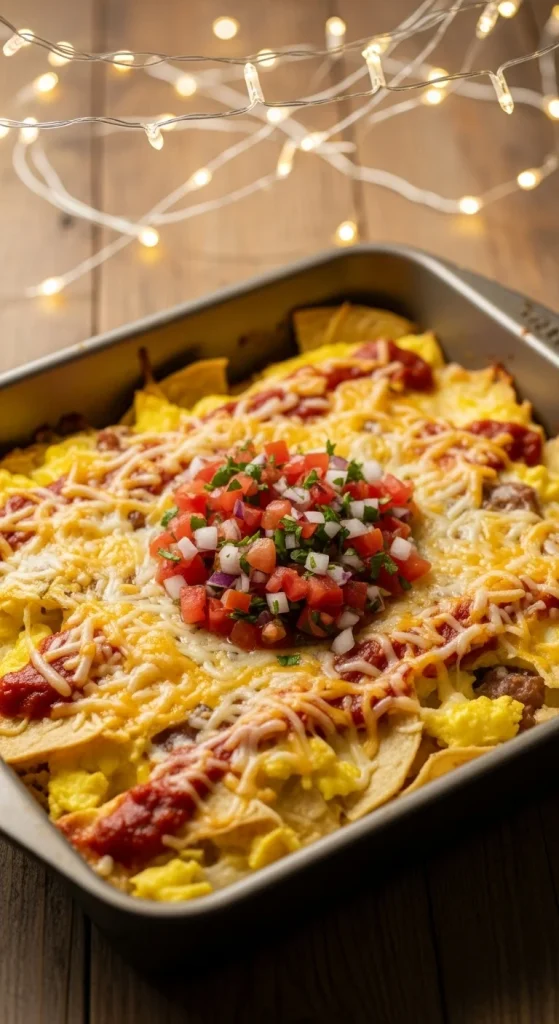 Mexican flavors meet breakfast comfort. Layer tortillas, eggs, and cheese with salsa. Bake until bubbly. Add sausage or beans for more heartiness. It’s filling, colorful, and feeds a crowd easily.