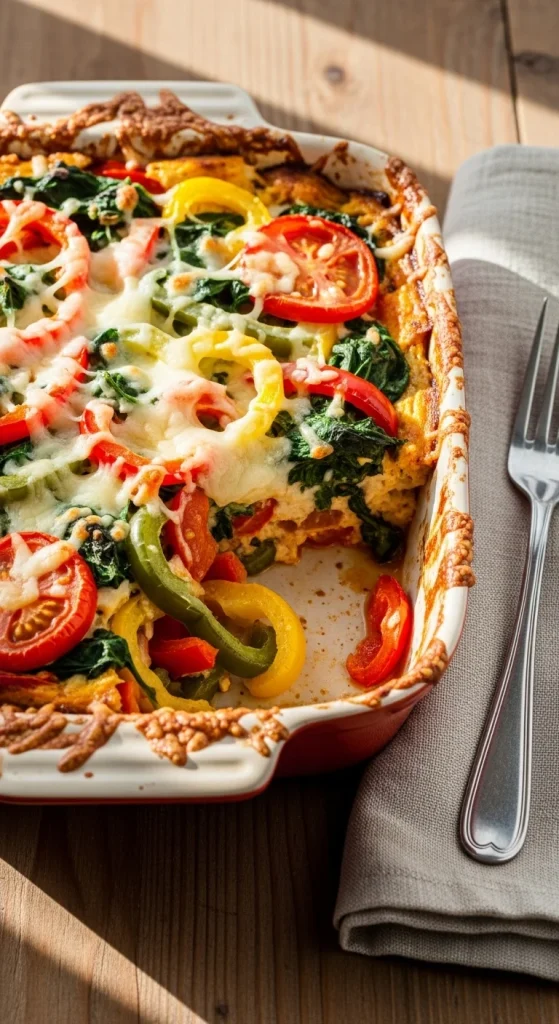 A lighter yet satisfying option. Sauté your favorite vegetables before mixing them with eggs and cheese. Bake until firm and golden. It’s healthy, colorful, and easy to customize with what’s in your fridge. Great for vegetarians or anyone wanting a fresh start to the day.
