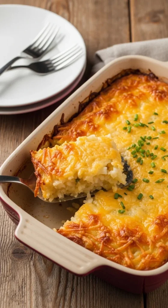 Cheesy, crispy, and satisfying. Mix shredded hash browns with eggs, sour cream, and cheddar. Add sausage or bacon if you like. It’s hearty and freezes well for leftovers. Use frozen hash browns to save prep time.
