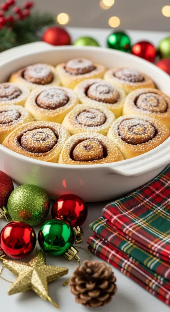 This is breakfast comfort in one dish. Layer store-bought cinnamon rolls with eggs, milk, and a hint of vanilla. Let it sit overnight, then bake in the morning. The aroma alone feels like Christmas. Drizzle icing before serving. It’s sweet, simple, and perfect for feeding a crowd.