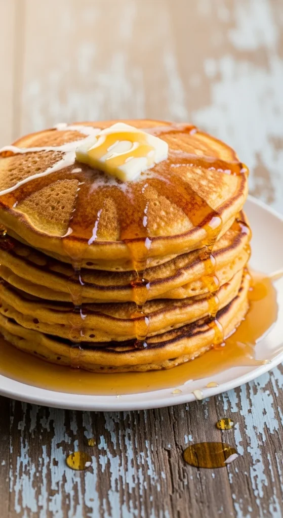 Add mashed sweet potatoes to your pancake mix for a seasonal twist. They’re fluffy, lightly spiced, and pair well with maple syrup. Serve with bacon or sausage for a complete breakfast. Easy to make and full of flavour.