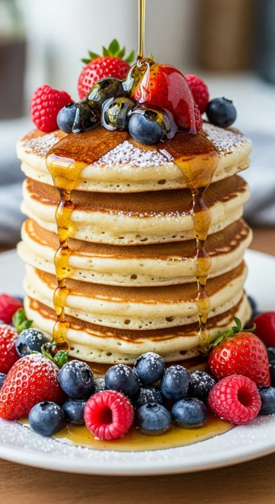 2. Fluffy Pancake Stack with Berries
