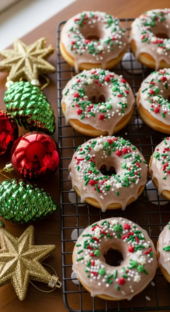 Skip the frying — bake your donuts instead. Glaze with vanilla icing or dip in chocolate. Decorate with red and green sprinkles for a festive touch. They’re fun for kids to help make and easy to package for gifting.