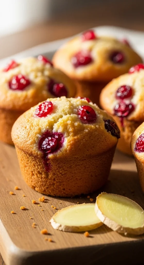 The mix of ginger and cranberry adds a bright morning flavour. Use grated ginger for a sharper taste. Frozen cranberries work well and save money. Stir the ginger into the wet ingredients for even distribution. These muffins come out soft and colourful. Serve with honey for a warm contrast. They’re perfect for winter mornings when you want something bright but simple.
