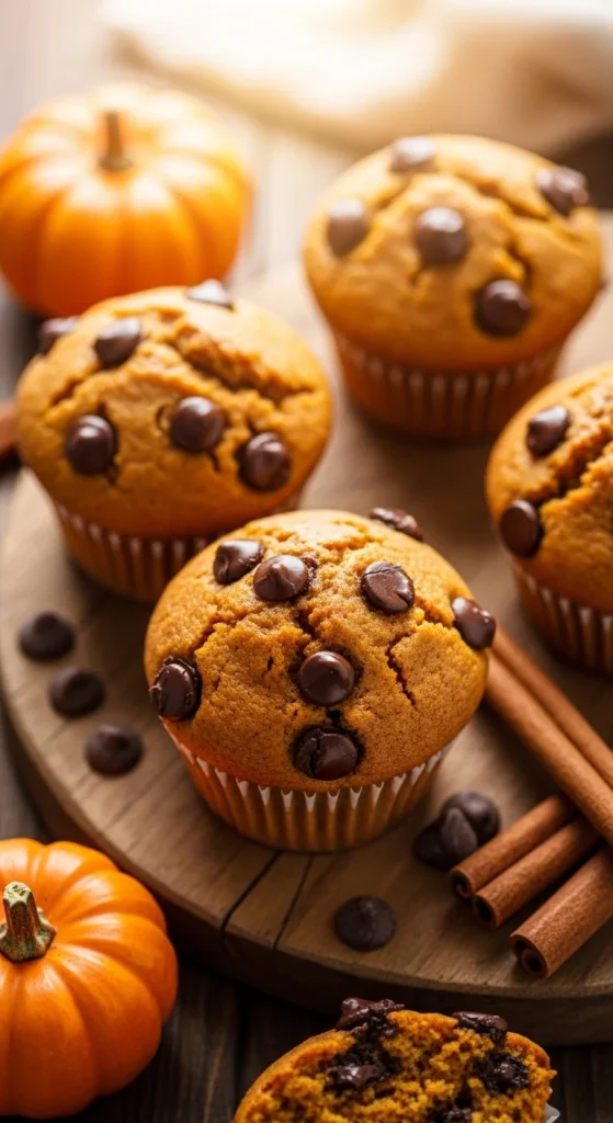 Pumpkin puree keeps muffins soft and rich. Use canned pumpkin to save time. Add chocolate chips for contrast. Store-brand chips work fine. Stir the batter lightly so the muffins stay fluffy. These muffins freeze well, so make extra for later days. Serve warm with butter or leave plain for a simpler bite.