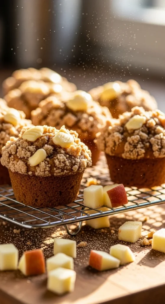 Chopped apples add moisture while the crumble topping makes them feel bakery-level. Use any apples you already have. Even soft apples work once baked. The crumble is simple: flour, sugar, and butter mixed with your fingertips. Add a touch of cinnamon for warmth. Make extra crumble and freeze it for future batches. These muffins work great for gifting—wrap in brown paper and tie with twine for a simple touch.