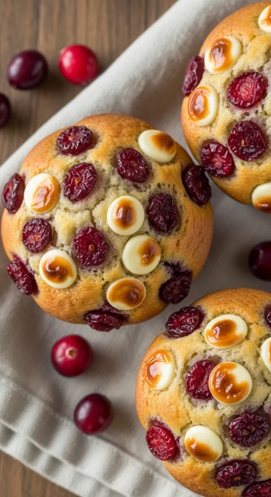 White chocolate softens the tart cranberry flavour. These muffins look bright on a holiday table. Use frozen cranberries if you want to stretch your budget—they work perfectly. Stir the chips in at the end to keep them from sinking. If you like extra colour, dust the tops with a light sugar sprinkle before baking. These muffins are also nice for gifting in small holiday tins.