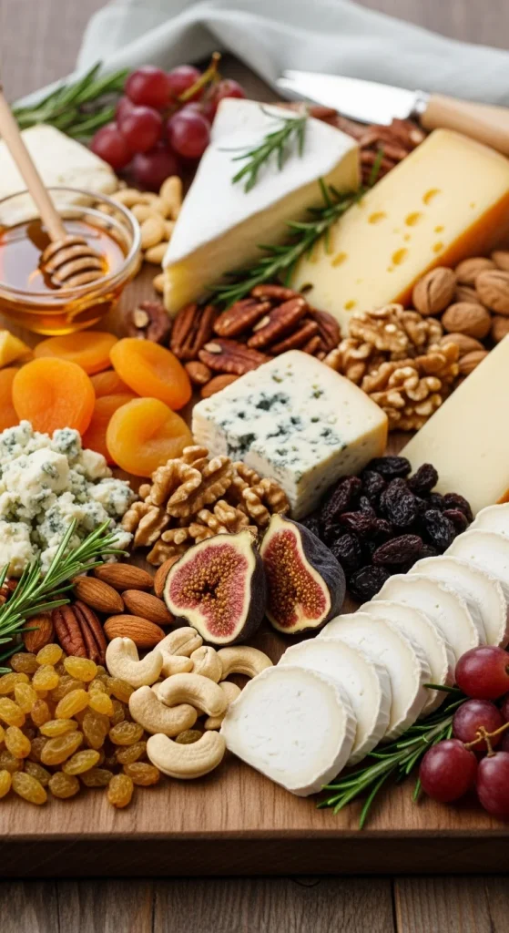 Incorporating nuts and dried fruits into your cheese board adds texture and flavor diversity. Almonds, walnuts, and cashews pair beautifully with rich cheeses like gouda and brie. Add a variety of dried fruits like apricots, raisins, and figs for a touch of sweetness.