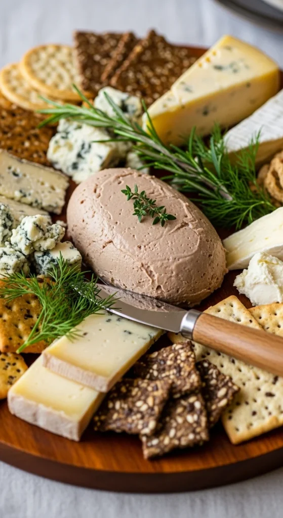 For a savory spread, combine pâté with a variety of cheeses such as goat cheese, brie, and cheddar. The pâté’s rich, smooth texture complements the cheeses, while fresh herbs like rosemary and thyme add a fragrant touch. Serve with crackers and sliced baguette for easy pairing.