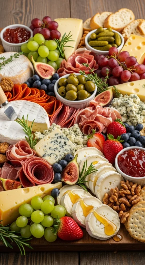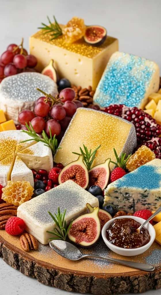 Add a touch of sparkle to your cheese board by dusting cheeses with edible glitter. It’s a fun and festive way to make your spread look extra special. Pair with seasonal fruits like grapes and figs, and you’ve got a board that’s as beautiful as it is tasty.