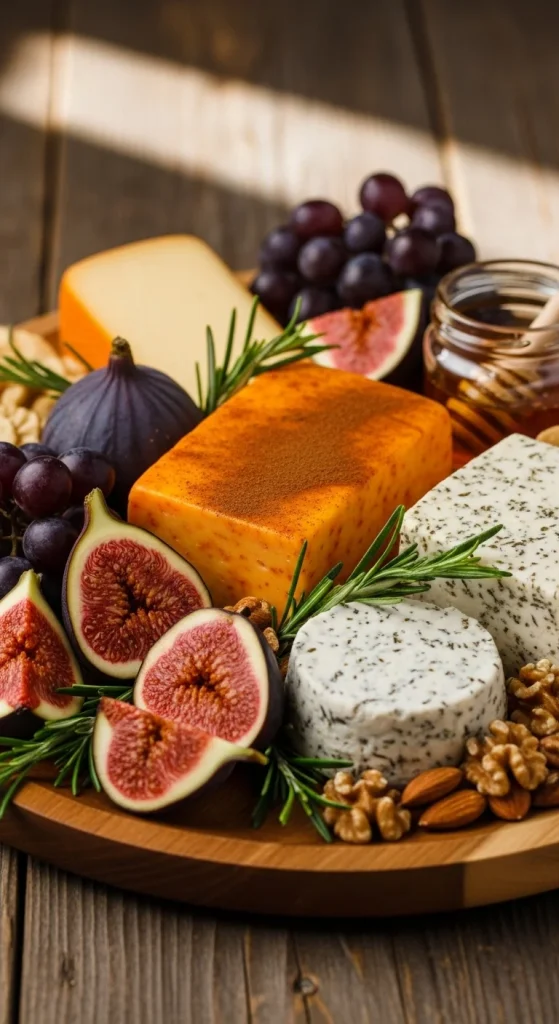 Add some winter spices to your cheese board with cheeses like cinnamon cheddar or spiced brie. Pair them with fresh figs and a handful of roasted pecans. The sweetness of the figs and the earthy flavor of the rosemary create a wonderfully festive vibe, perfect for holiday gatherings.