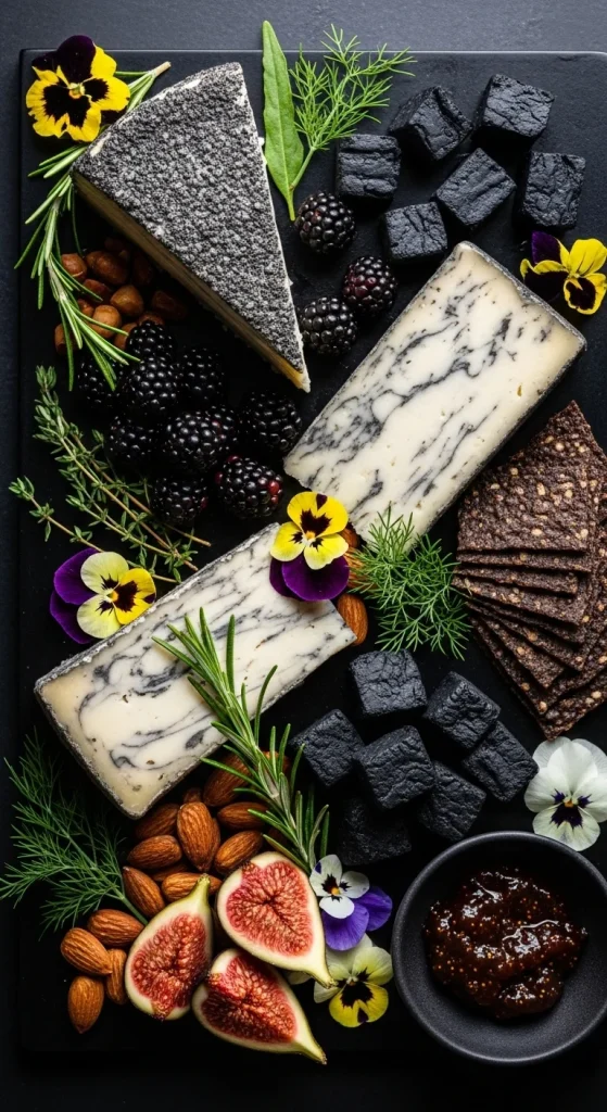 For a dramatic touch, incorporate charcoal-infused cheeses such as black cheese with herb-infused options like rosemary goat cheese. Pair with dark berries like blackberries and garnish with edible flowers for a visually striking spread that looks as unique as it tastes.