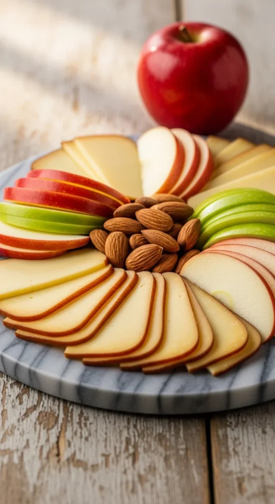 Smoked cheddar is rich and full of depth, making it an excellent choice for pairing with crisp apple slices. The apple’s sweetness contrasts beautifully with the smoky flavor of the cheddar, creating a satisfying and elegant balance. Add a handful of almonds for extra crunch and a touch of salty goodness.