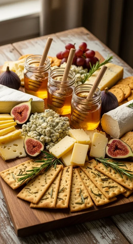 7. Sweet and Savory Cheese Board with Honey