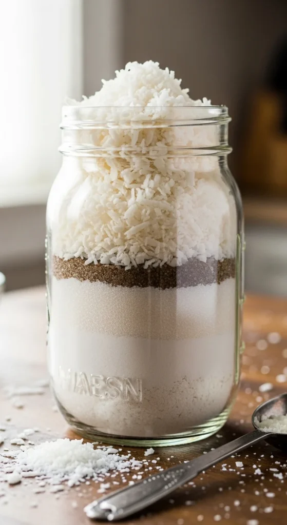 For a tropical twist, create a jar with all the ingredients for chocolate-dipped coconut macaroons. Include shredded coconut, sugar, and egg whites. After baking, the cookies can be dipped in melted chocolate for an indulgent finish. These macaroons will be a unique and flavorful addition to any holiday cookie collection.