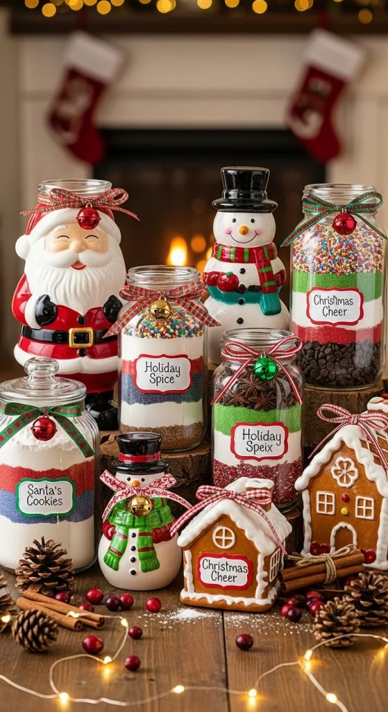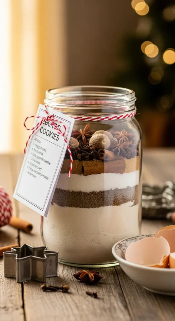 For a festive touch, create a gingerbread cookie mix. Fill the jar with flour, baking soda, ginger, cinnamon, cloves, and brown sugar. You can also add a small bottle of molasses for the recipient to mix in. This recipe evokes the cozy flavors of Christmas and makes for a delicious holiday cookie.