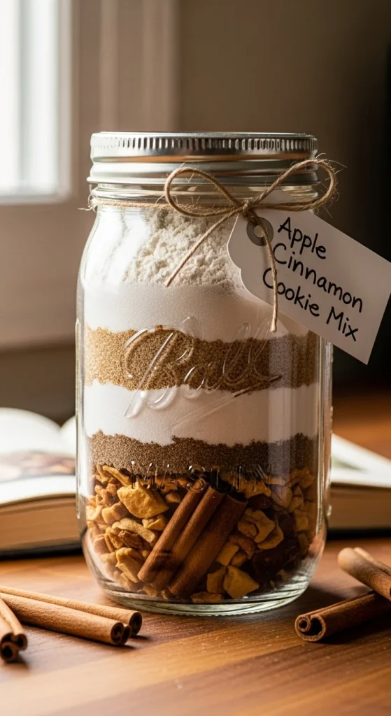 An apple cinnamon streusel cookie mix offers a comforting, fall-inspired flavor. Layer dried apples, cinnamon, and sugar in the jar, and include a bit of streusel topping. When baked, the cookies have a crumbly, sweet topping that pairs beautifully with the spiced dough.