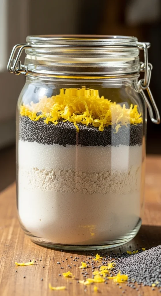 For a refreshing and light cookie option, gift a lemon poppy seed cookie mix. Layer lemon zest, poppy seeds, and flour in the jar, along with a touch of sugar. These cookies are bright and zesty, perfect for those who love the fresh, citrusy flavors of lemon, making them a great choice for any holiday gathering.