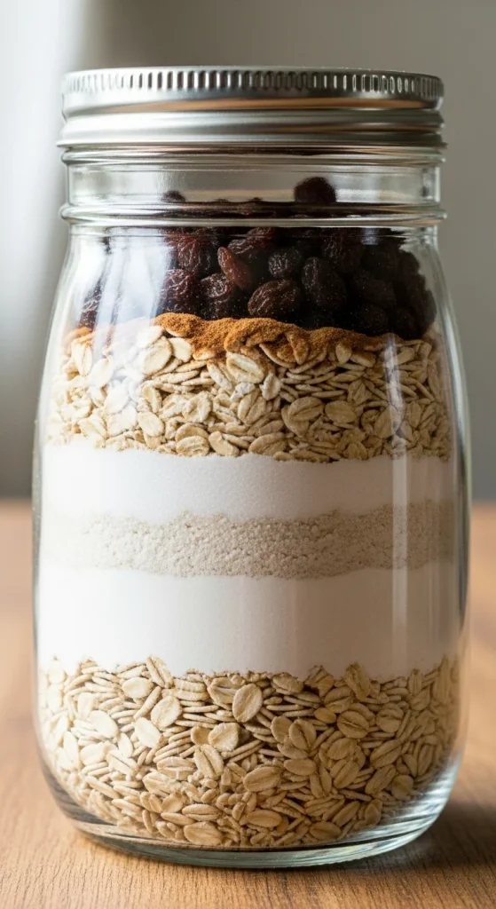 For a heartier option, consider an oatmeal raisin cookie mix. Combine rolled oats, flour, brown sugar, cinnamon, and raisins in the jar. Simply add eggs, butter, and vanilla extract, and you’ve got a deliciously chewy treat that’s both comforting and filling.
