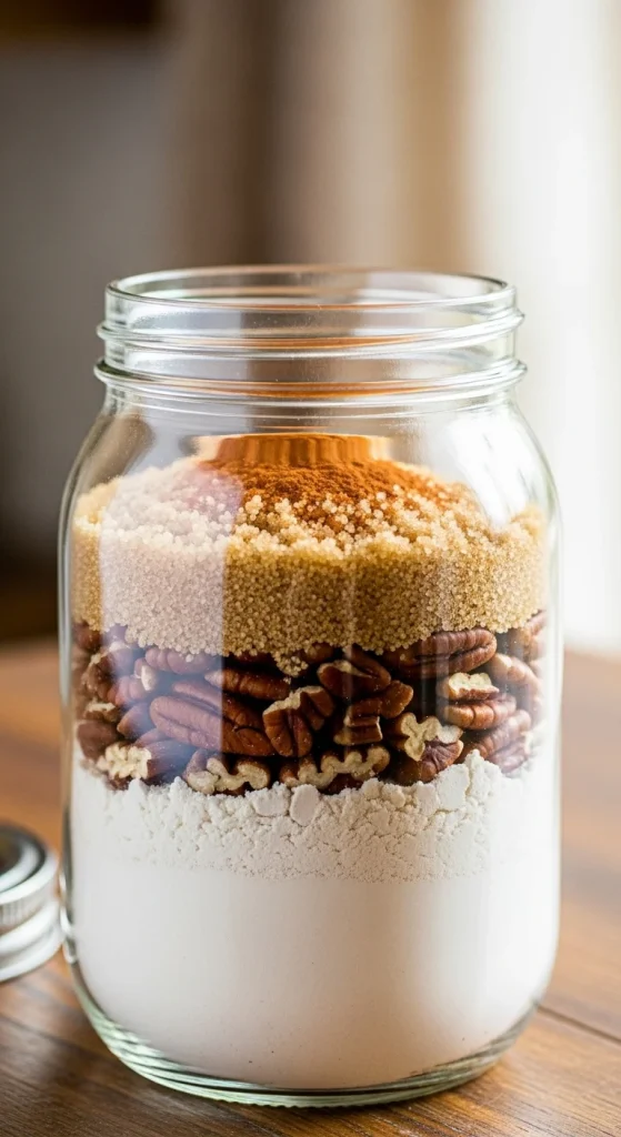 For something different, gift a pecan pie cookie mix. Combine flour, brown sugar, baking soda, and pecans in the jar. This cookie captures the essence of pecan pie, with rich, nutty flavors and a chewy texture that’s sure to delight those who love pecan-filled desserts.