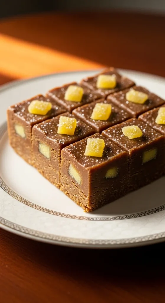 Gingerbread fudge combines the creamy richness of fudge with the spicy warmth of gingerbread. This sweet treat is made by mixing white chocolate with gingerbread spices, then setting it to firm up into smooth, melt-in-your-mouth squares. Top with candied ginger for a nice finishing touch.