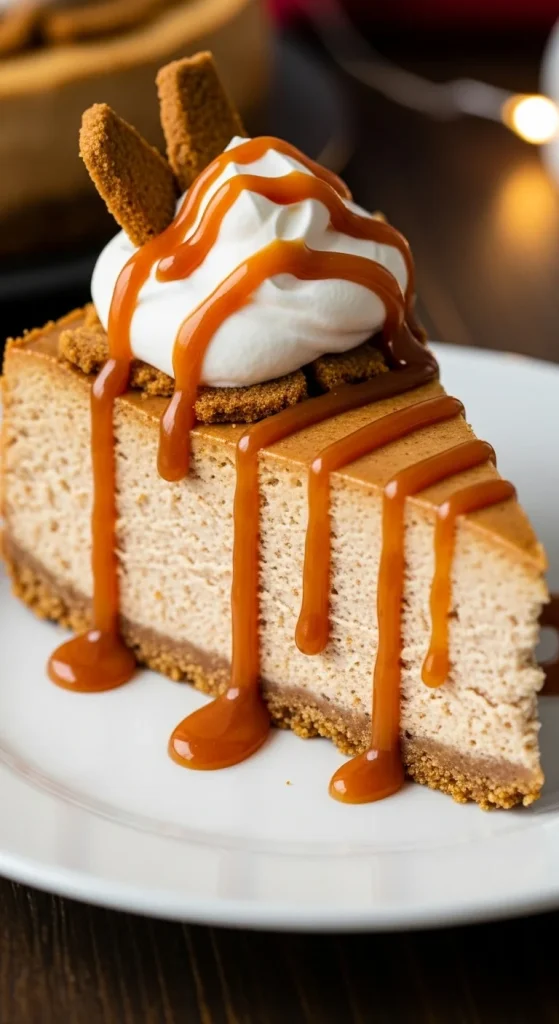 This gingerbread cheesecake is a showstopper dessert for your holiday table. A spiced graham cracker crust perfectly complements the creamy, rich filling that’s infused with gingerbread spices. Top it with whipped cream and a drizzle of caramel for a festive and indulgent treat.