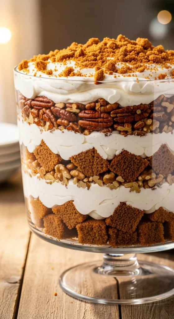 A gingerbread trifle is an impressive dessert that’s easy to assemble. Layers of moist gingerbread cake, spiced whipped cream, and caramelized nuts come together in a festive, visually stunning treat. It’s perfect for a large gathering and can be prepared ahead of time.