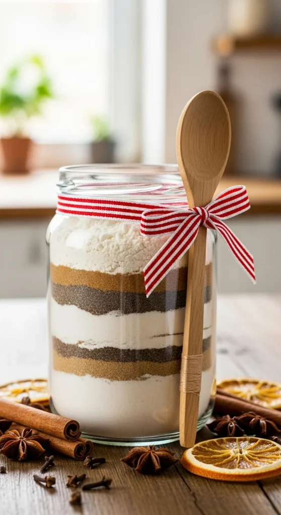 Combine flour, baking powder, sugar, and salt. Add a recipe tag: “Just add milk and eggs.” Simple, affordable, and thoughtful. Great for breakfast lovers or busy families.