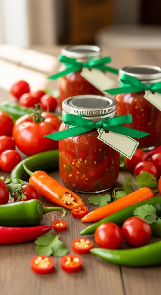 Blend tomatoes, onions, cilantro, and jalapeños. Simmer until thick, then jar it up. It’s tangy, spicy, and perfect for snack lovers. Pair with a bag of tortilla chips for a full gift set.