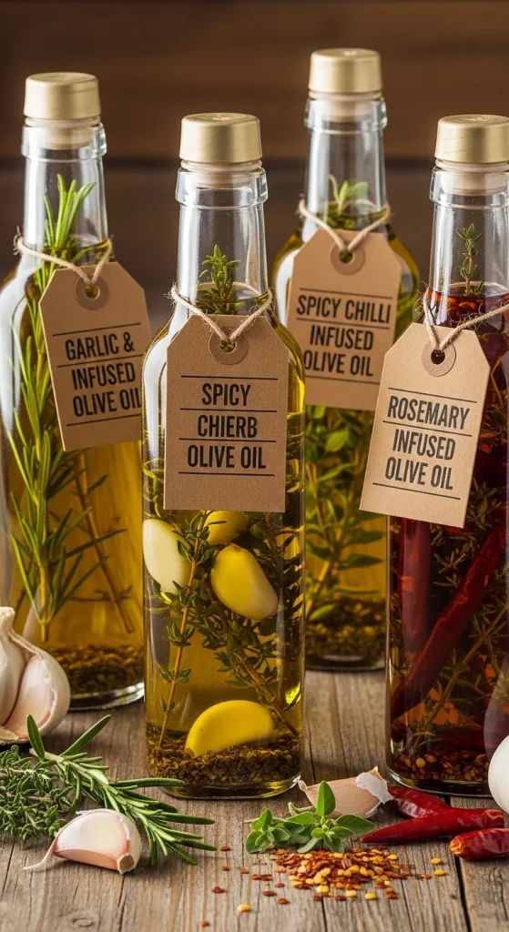 Warm olive oil slightly and add rosemary, garlic, or chili. Let it steep for a few days before gifting. Pour into glass bottles and label the flavours. It’s elegant, practical, and suits any cook.