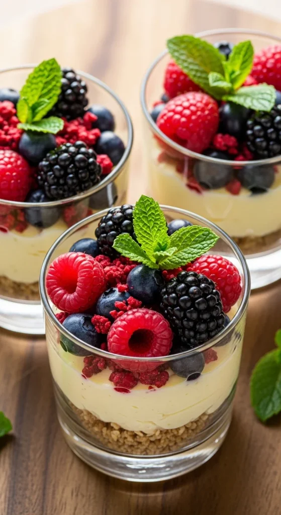 These mini cheesecakes are effortless and mess-free. Mix cream cheese, sugar, and vanilla, then spoon over a crust made from gluten-free cookies. Chill for a few hours before serving. They’re creamy, festive, and portion-perfect.