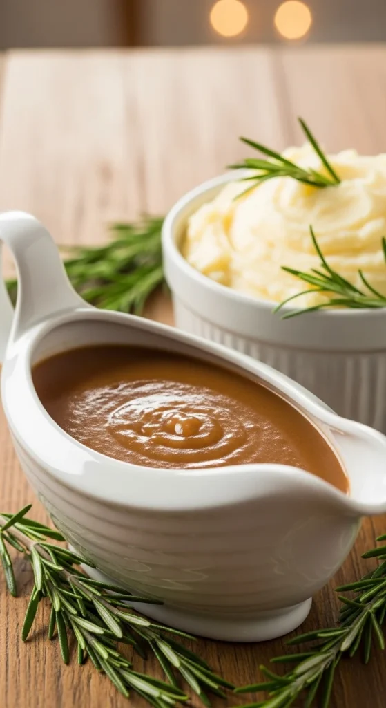 Skip the flour and make gravy with cornstarch or arrowroot instead. Simmer turkey or vegetable drippings with broth, herbs, and a cornstarch slurry until thickened. The result is smooth, flavorful, and perfect for topping mashed potatoes or roasts.