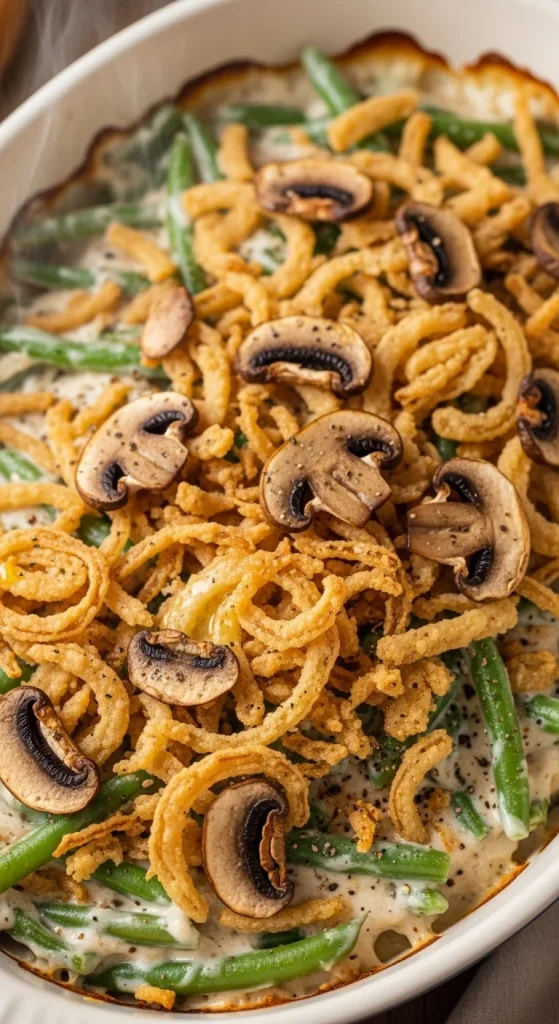 Use gluten-free cream of mushroom soup and crispy onions (store-bought or homemade). Mix with blanched green beans and bake until bubbling. This dish tastes like the traditional version but works for gluten-free guests without compromise.