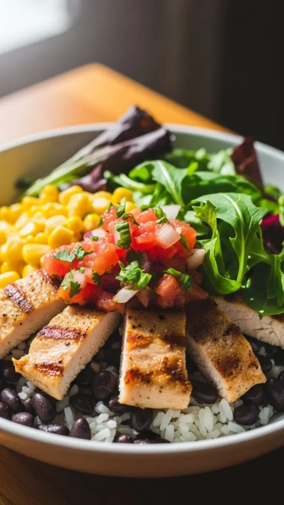 Burrito bowls help you build balanced meals without stress. Cook brown rice, add seasoned chicken, beans, corn, and salsa. Layer everything in a bowl and top with greens or avocado. Use canned beans for convenience. This recipe works well for meal prep because each bowl stays firm and reheats smoothly. Adjust toppings based on what you have at home.