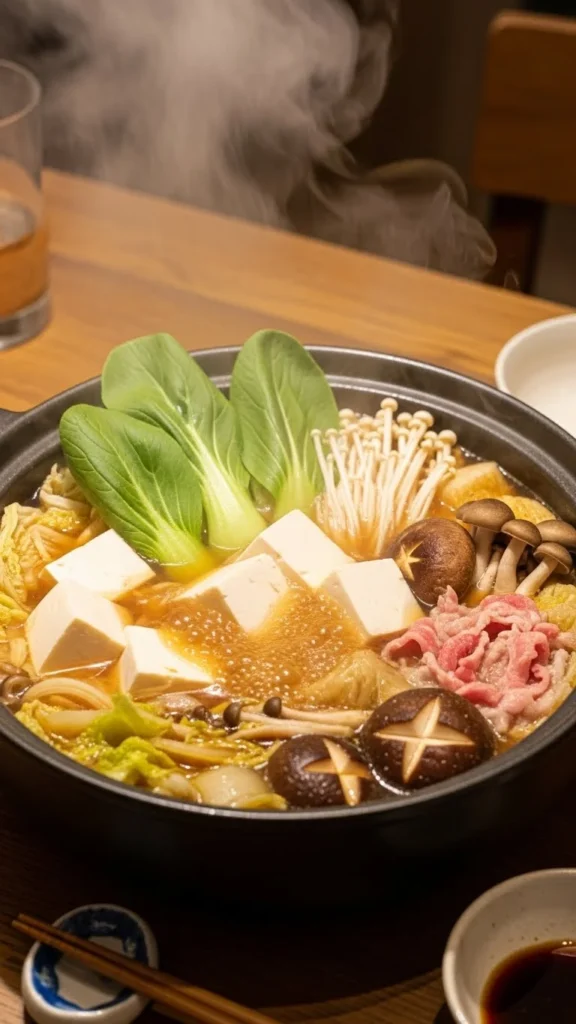 A hot pot creates warmth without heavy ingredients. Simmer broth with garlic and ginger. Add tofu, mushrooms, and greens. Let everything soften slightly. Serve with rice or noodles. This dish works well for winter because it warms the body and stays light. Use firm tofu so it holds shape. Add chilli flakes for gentle heat.