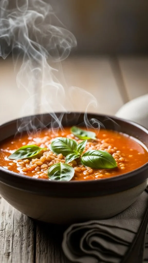 Farro adds chewiness to tomato soup, making it more filling. Simmer tomatoes, onions, garlic, and stock. Add farro and cook until tender. Stir in basil or spinach at the end. Serve with wholegrain bread. Farro stays firm, so leftovers hold texture. Use canned tomatoes to keep the cost low and the process simple.