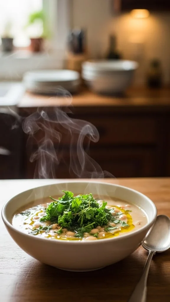 This soup brings gentle thickness without heavy ingredients. Simmer onions, garlic, and white beans. Add chopped kale and stock. Let everything soften. Serve warm with crusty bread. Beans help keep you full, and kale holds its shape nicely. Keep canned beans in your pantry so you can make this any night.