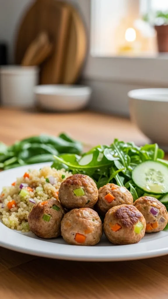 Turkey meatballs feel light but satisfying. Mix ground turkey with grated carrots, zucchini, onions, and oats. Form small balls and bake until golden. Serve with marinara sauce, quinoa, or simple greens. These meatballs freeze well and work in bowls, wraps, or soups. Add spinach or peppers if you want extra colour. Use store-brand turkey mince to keep the recipe affordable.