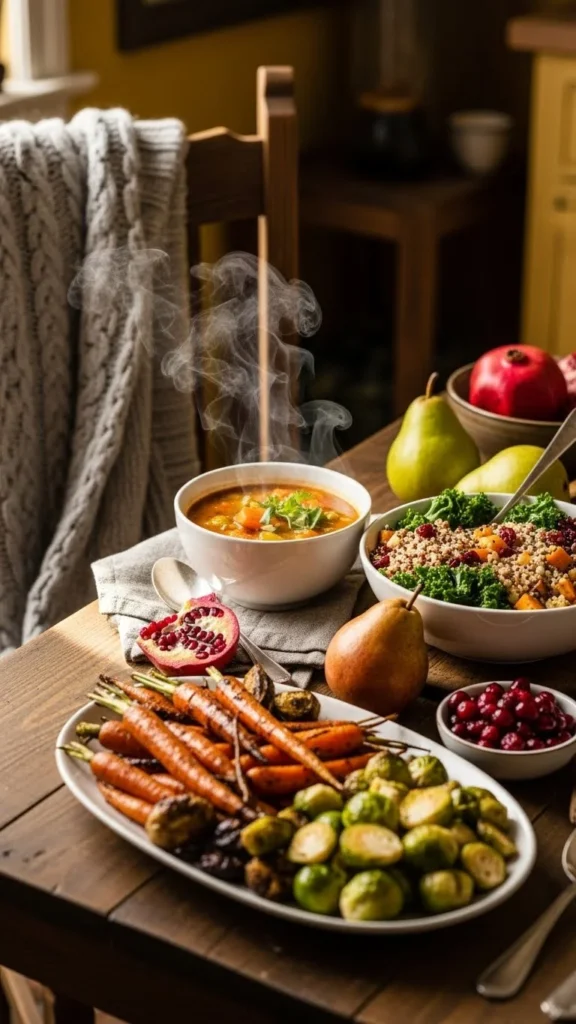 Stuffed squash makes winter dinners feel special without extra work. Roast acorn squash halves until tender. Fill with quinoa, cranberries, spinach, and herbs. Bake again for a short time. This dish brings colour to the table and keeps you full with whole grains and vegetables. Use dried cranberries for low-cost sweetness. It reheats well and holds its shape during storage.