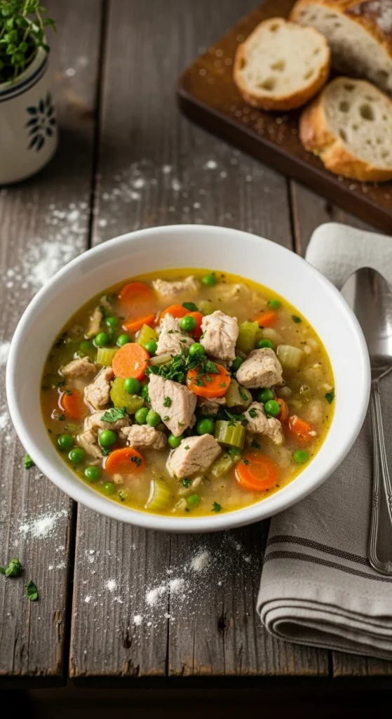 Use leftover turkey to make a warm soup. Add carrots, potatoes, and peas. Stir in milk or cream to thicken. This helps stretch leftovers into a full meal. Freeze extra portions for later. It’s a simple dish that brings a cosy feel to the evening.