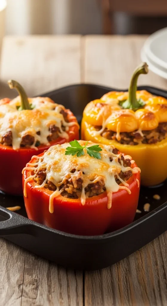 Stuffed peppers look colourful and taste hearty. Fill with rice, vegetables, and ground meat or beans. Top with cheese and bake until soft. This meal works well when peppers are on sale. You can make several at once and reheat easily. They look great on a holiday table.