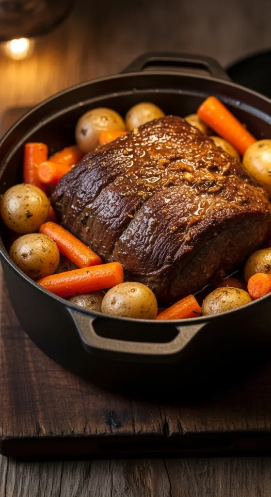 Pot roast cooks slowly and becomes tender without needing constant attention. Add beef, potatoes, onions, and carrots to a pot with broth. Let it simmer until the meat softens. This dish feeds several people and works great for weekend dinners. To cut costs, use more vegetables and a smaller roast. Serve with bread to soak up the sauce.