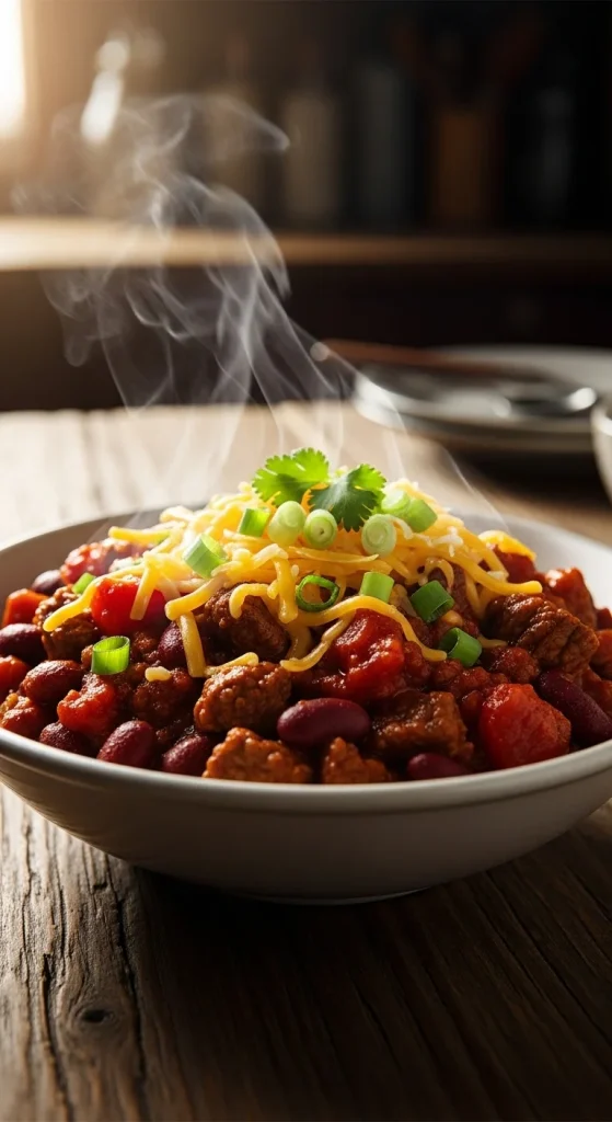 Chili is perfect for cold evenings. Use beans, tomatoes, and ground meat or turkey. Add spices and let it simmer. If meat is expensive, use half the amount and add an extra can of beans. Serve with rice, bread, or baked potatoes. Chili stays warm in a pot for hours, ideal for casual gatherings or game nights.