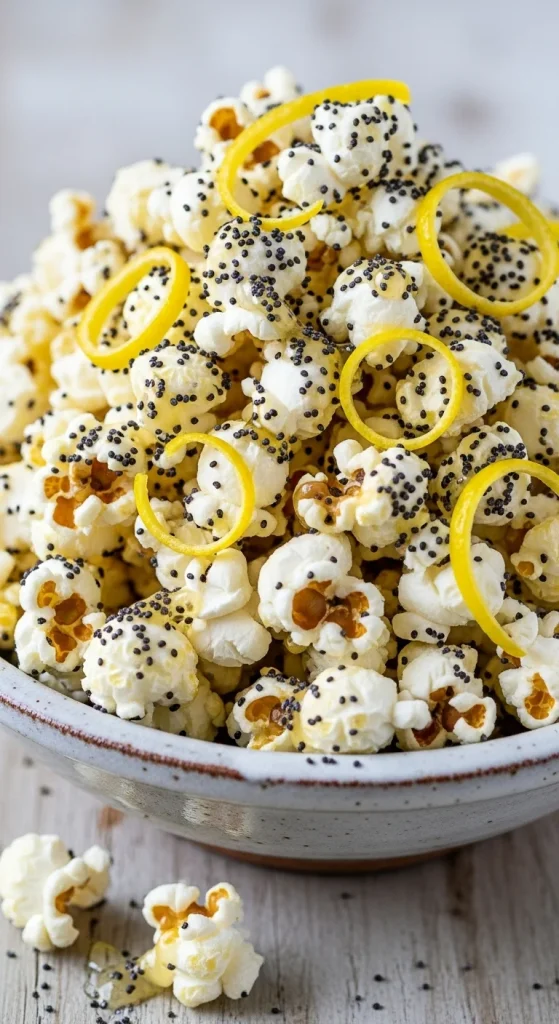 For a zesty, refreshing snack, try poppy seed lemon popcorn. Toss freshly popped popcorn with a touch of lemon zest and poppy seeds. Drizzle with a bit of lemon glaze for an extra citrusy finish. The bright lemon flavor makes this a perfect snack for holiday brunches or parties.