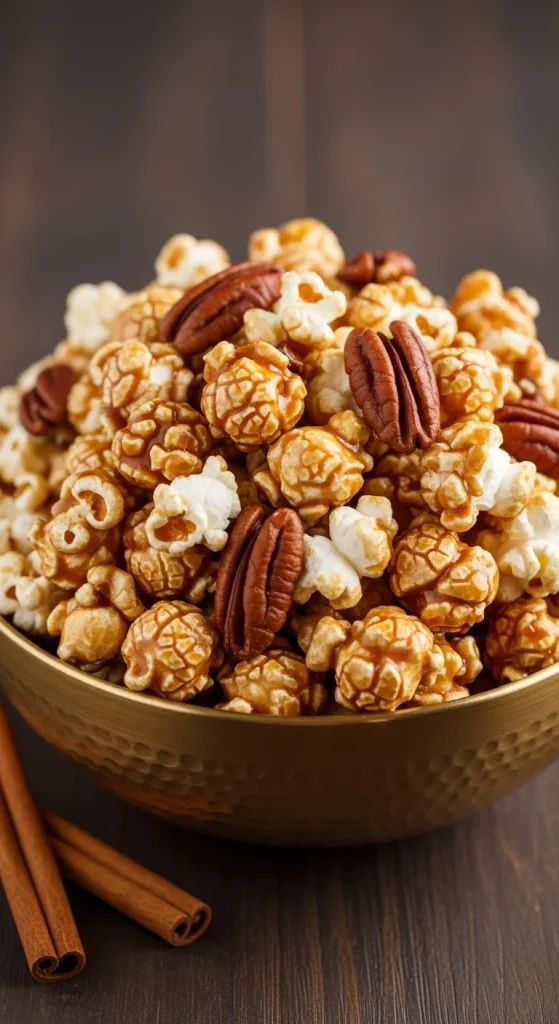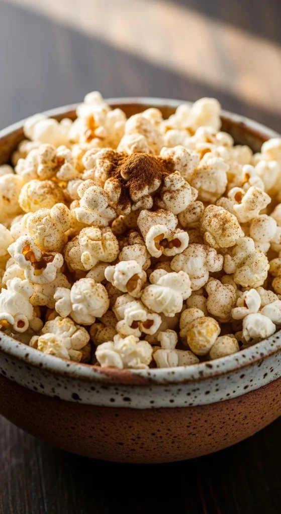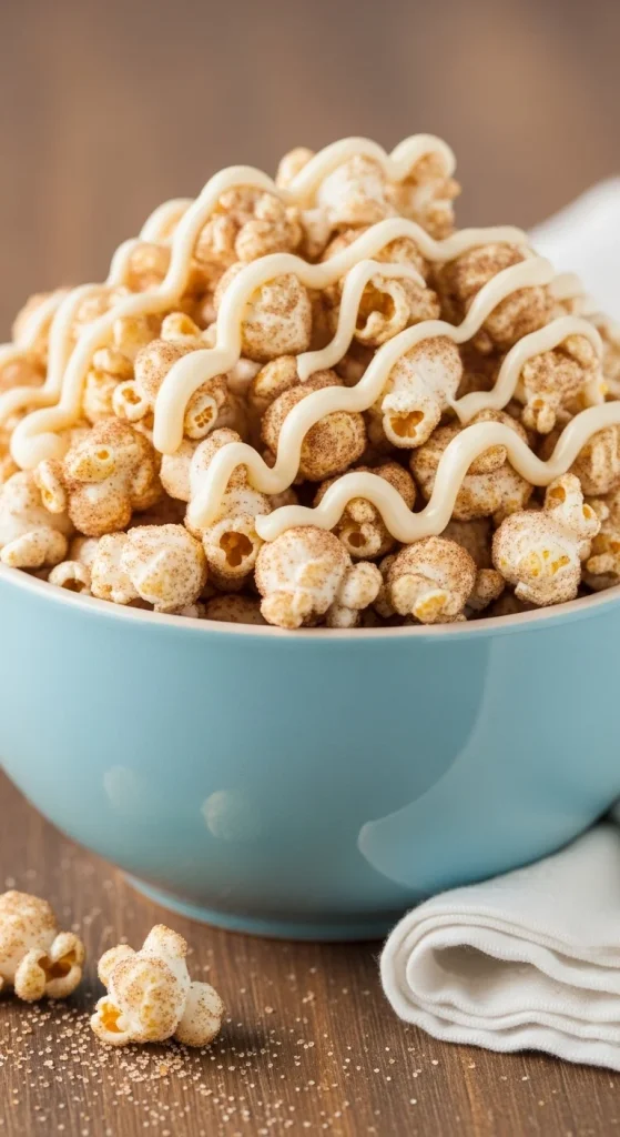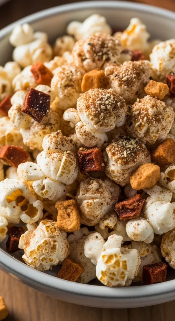 If you love cinnamon rolls, you’ll adore this cinnamon roll popcorn. Coat your popcorn with a mixture of cinnamon sugar and drizzle with a sweet icing for a rich, comforting treat. The warm cinnamon flavor makes this snack feel like a cozy holiday breakfast in a bowl.