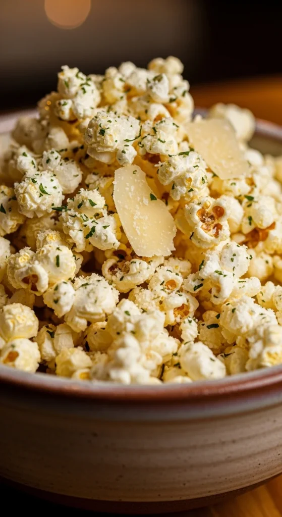 For a savory, cheesy snack, make garlic parmesan popcorn. Toss popcorn in garlic butter and sprinkle with freshly grated Parmesan cheese. This rich and flavorful snack is perfect for holiday movie nights and gatherings with family and friends.