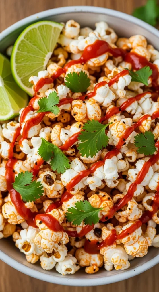 If you love bold flavors, Sriracha lime popcorn is for you. Coat your popcorn with Sriracha sauce and squeeze fresh lime juice over it for a spicy, tangy flavor. Garnish with fresh cilantro for a flavorful, zesty holiday snack.