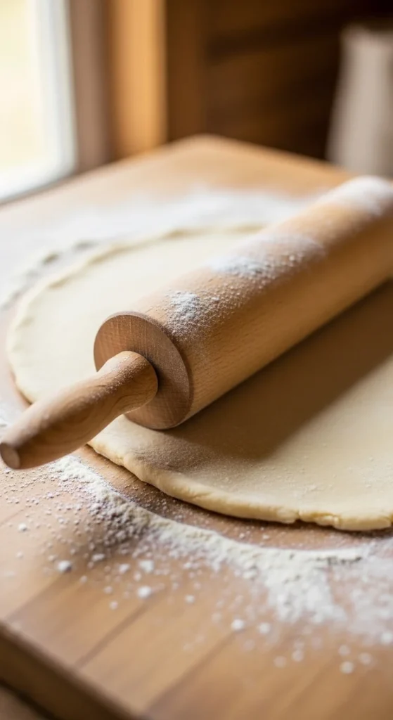 Roll out the dough once chilled. This will form the base of your pie.