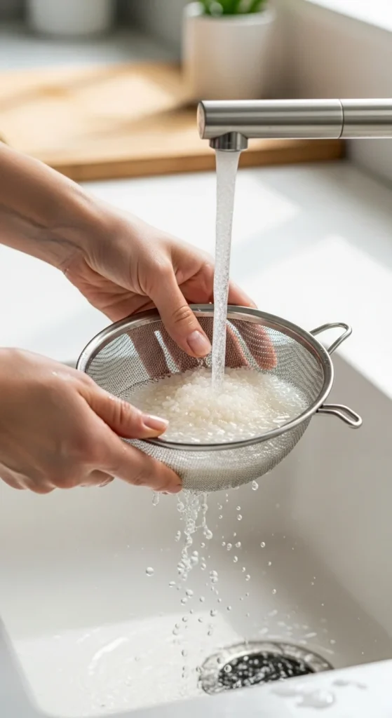 Rinsing removes excess starch, which helps prevent clumping and sticky results.